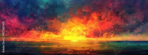 abstract, sunset, ocean, sky, cloud, vibrant, colourful, painting, dramatic, sea, horizon, nature, landscape, art, water, evening, twilight, scenery, beauty, artistic, bright, serene, tranquil, dusk, glow, peaceful, high-coloured, picturesque, creative, seascape, impressionist, atmospheric, gradient, warm, bold, expressive, marin