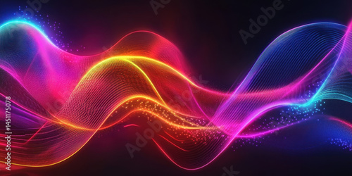 Vibrant abstract wave pattern featu colorful glowing lines and flowing motion for digital art design backgrounds and futuristic technology themes