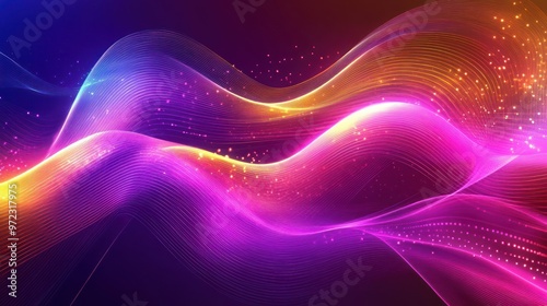 Vibrant abstract waves in purple and gold hues create a captivating visual rhythm.
