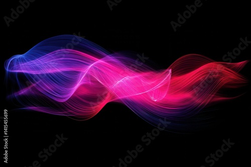 Vibrant Abstract Waves of Light in Blue and Pink Against Black Background