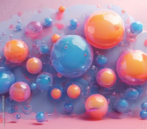 vibrant and abstract arrangement of colorful spheres, predominantly in shades of blue, pink, and orange, creating a dynamic and visually composition.