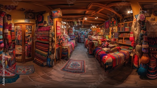 Vibrant and colorful traditional market stall filled with handmade textiles and crafts