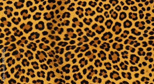 Vibrant and detailed wild cat print pattern in classic golden and black hues, showcasing a natural animal skin texture perfect for backgrounds, fashion designs, and decorative elements