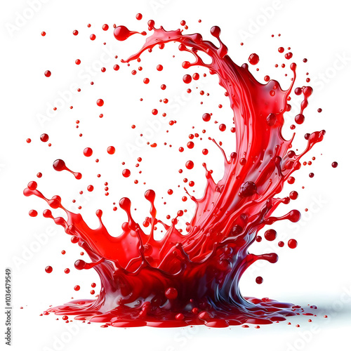 Vibrant and energetic splash of a red liquid similar to red berry jam, syrup, juice or punch, cut out