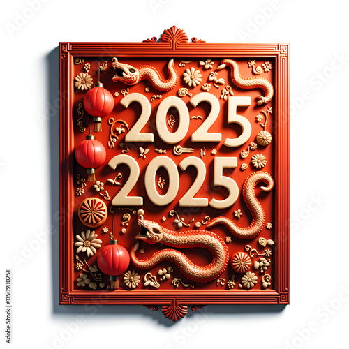 Vibrant artwork for the year of the snake 2025 celebrating lunar new year, 3d rendering of cultural celebration concept.