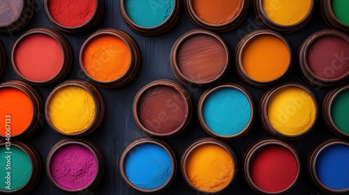Vibrant assortment of paint pots in various colors