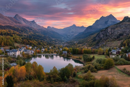 Vibrant autumn colors paint the trees and reflect in the calm lake