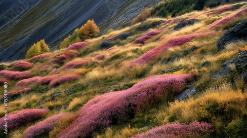 Vibrant Autumnal Hillside: Close-Up Photo of Gently Swaying Wildflowers. AI Generated