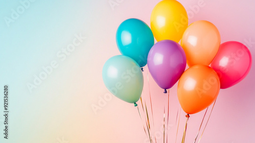 Vibrant Balloons in Various Colors on a Soft Pastel Gradient Backdrop, Creating a Joyful and Festive Scene