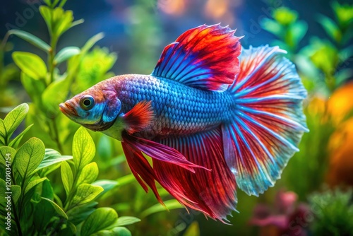 Vibrant Betta Fish in Glass Aquarium, Colorful Tropical Fish, Stunning Underwater Photography