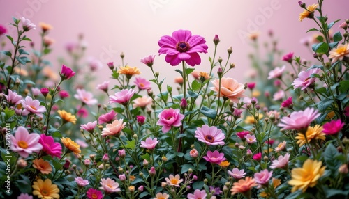 Vibrant Blooming Flower Garden with Colorful Petals in Soft Pink and Orange Background