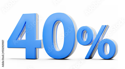 Vibrant Blue 40% Forty Percent Sign With Metallic Gleam On White Background 3D Illustration