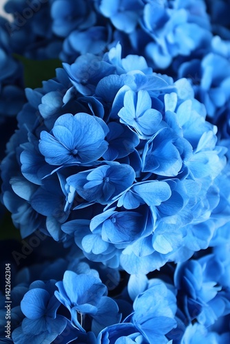 Vibrant Blue Hydrangea Flowers Close Up Macro Photography