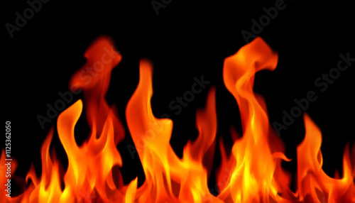 Vibrant bottom border, intense fire with dynamic flames and heat waves against a stark, isolated on transparent background