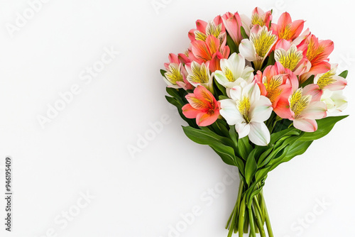 Vibrant bouquet of pink and white Alstroemeria flowers with rich green leaves, symbolizing beauty and elegance, perfect for celebrations or as a thoughtful gift