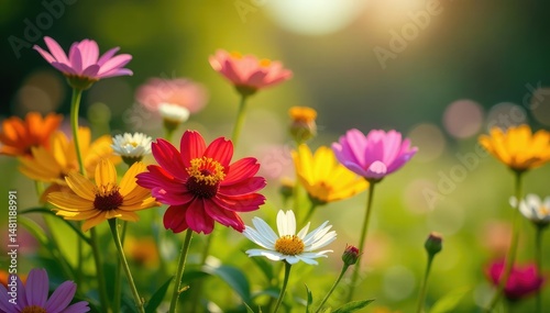 Vibrant bouquet of wildflowers, out-of-focus, sunlight , detail, abstract
