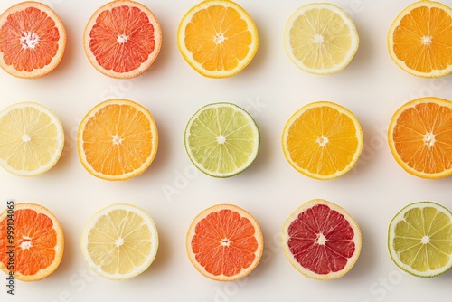 Vibrant citrus slices arranged in a geometric pattern on a clean background