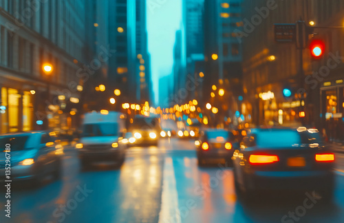 Vibrant city street captured with blurred cars and lights creating an urban night scene ambience
