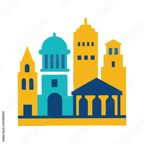 Vibrant Cityscape Architectural Illustration of Urban Buildings and Structures