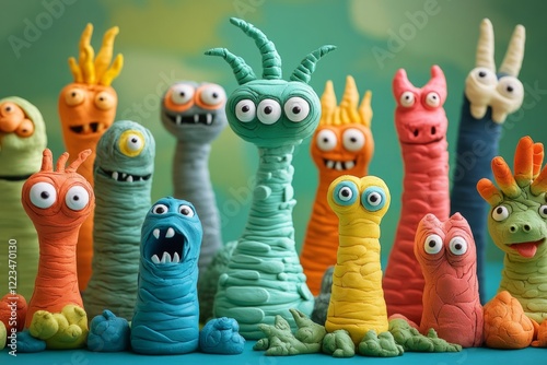 clay, monster, colourful, playful, expression, vibrant, eye, art, creativity, hand-made, modelling, sculpture, whimsical, craft, fantasy, character, fun, imagination, artistic, bright, design, decoration, unique, quirky, imaginative, cartoonish, texture, children, entertainment, hobby