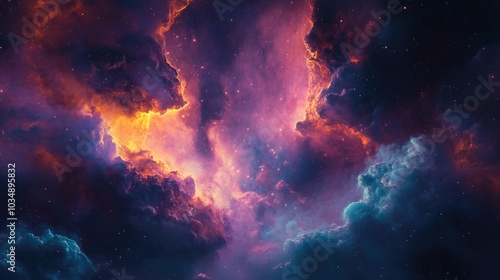 Vibrant clouds of a mesmerizing nebula flow through the vastness of space