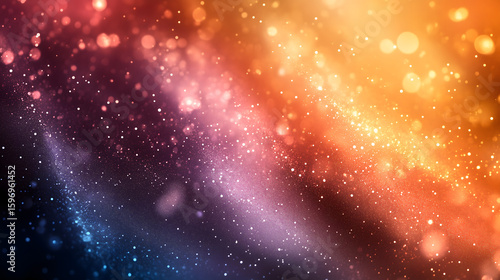 Vibrant cosmic background filled with colorful stars and glowing bokeh lights.