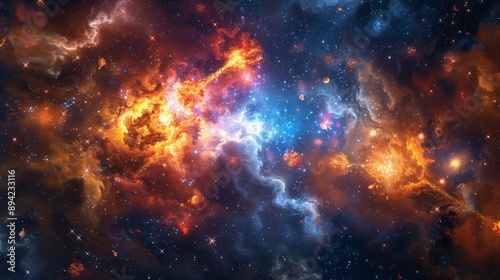 Vibrant Cosmic Background with Fiery Celestial Nebula for SpaceThemed Design, Poster, or Print