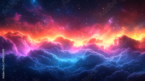 Vibrant cosmic clouds illuminated by radiant colors during a breathtaking celestial display at twilight. Generative AI