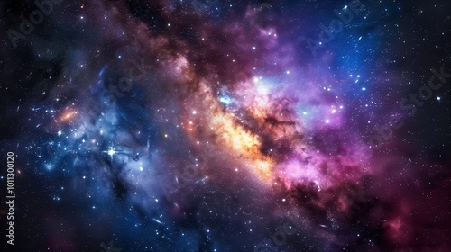Vibrant cosmic nebula with colorful interstellar clouds and stars, beautifully showcasing the wonders of the universe and outer space.