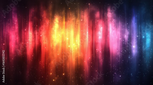 Vibrant cosmic nebula with colorful streaks and stars.