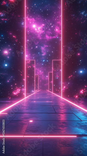 cosmic, pathway, neon, light, galaxy, star, illuminated, surreal, landscape, universe, colourful, night, digital, illusion, art, exploration, travel, fantasy, space, technology, design, bright, abstract, mystical, adventure, creative, scene, depth, modern, imaginative, dark, atmospheric, beauty, innovation, journey, visual, phenomena, high-coloured, ambience, colours, style, futuristic, dreamlike, horizon, pattern, generative
