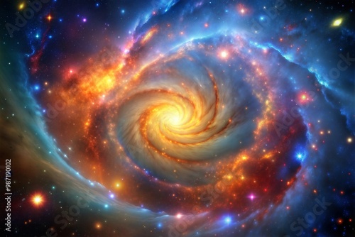 Vibrant cosmic spiral nebula with swirling colors and stars