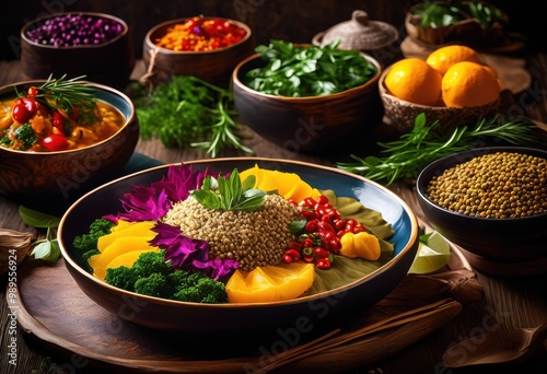 vibrant culinary visuals showcasing diverse global cuisines colorful fresh unique presentation styles, art, arrangement, appetizer, banquet, beverage