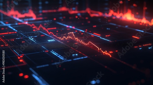 Vibrant Data Visualization: Financial and Technological Analytics with Neon Grid Highlights