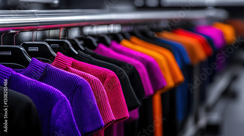 sweater, clothing, production, colourful, textile, fashion, garment, hanging, display, fabric, line, textile, style, variety, bright, knitwear, manufacturing, warehouse, retail, design, apparel, collection, shop, vibrant, system, organisation, industry, material, work, visual, aesthetic, showcase, hand-made, quality, pattern, craftsmanship, choice, creativity, colours, trendy, modern, assembly line, organised, rack, soft light