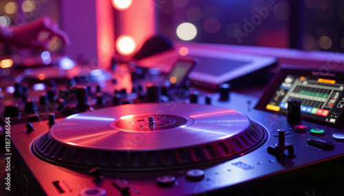 dj, nightlife, music, turntable, vibrant, entertainment, party, atmosphere, dancing, celebration, colours, light, technology, creativity, sound, rythm, joy, excitement, club, audio, performance, manipulation, vinyl, ambience, urban, modern, lively, people, hand, no people, audio system, studio, closeup, professional, youth, fun, digital, energetic, industry, gathering, volume, optical