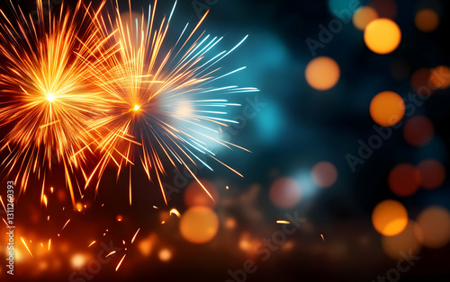 Vibrant fireworks illuminating the night sky, creating a festive atmosphere filled with colorful lights and celebration.