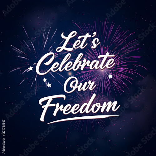 Vibrant fireworks with calligraphy text lets celebrate our freedom on dark night sky perfect for independence day theme