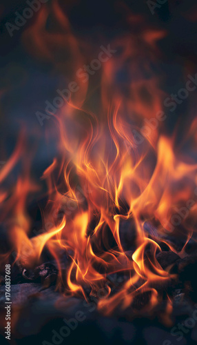 Vibrant flames dancing against a dark background, creating a warm and dynamic atmosphere.