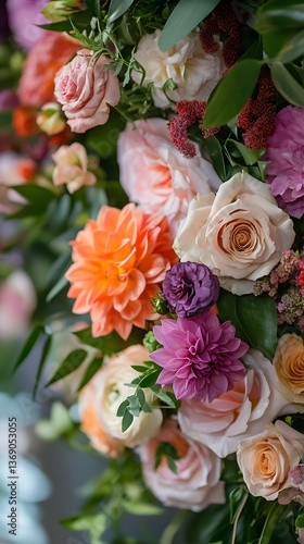 flower, floral, arrangement, bouquet, wedding, decoration, rose, peony, garden, colourful, colorful flowers, ornamental, design, bloom, fresh, nature, spring, summer, autumn, pretty, beautiful, elegant, stylish, luxury, wedding flowers, ceremony, event, detail, closeup, macro, photo, floral pattern, composition, vibrant, orange, pink, purple, peach, reddening, centrepiece, decor, celebration, party