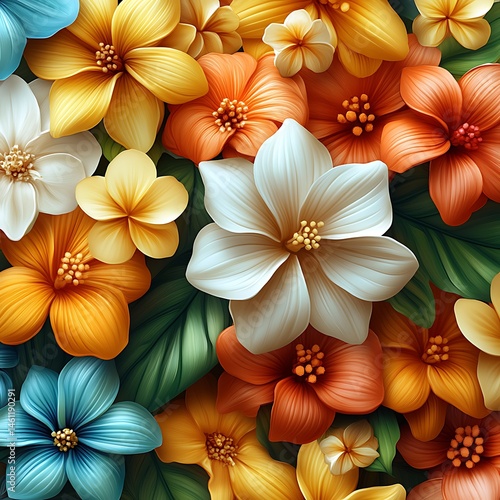 flower, arrangement, colourful, blossom, vibrant, flower petals, design, decorative, texture, pattern, floral, nature, leaf, plant, orange, yellow, blue, red, white, green, artistic, illustration, digital, composition, texture, background, decoration, style, beauty, art, graphic, image, artwork, rendering, detail, realistic, bold, bright, summer, tropical
