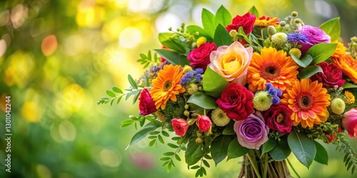 Vibrant floral arrangement on a green leafy branch, nature, floral, nature,floral, background