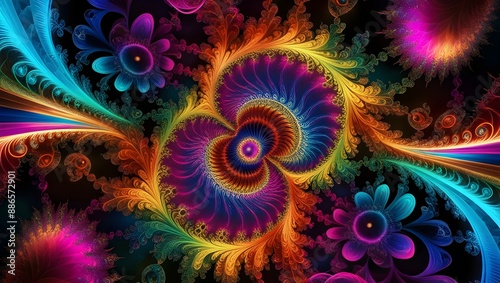 Vibrant Fractal Blossoms A Symphony of Color and Light Abstract Background