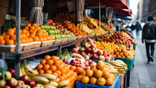 Vibrant Fruit Display at the Market | Fresh Fruits and Vegetables for Sale | A Colorful Market Stall | A Bountiful Harvest | A Healthy Food Market | high resolution 300 DPI large image
