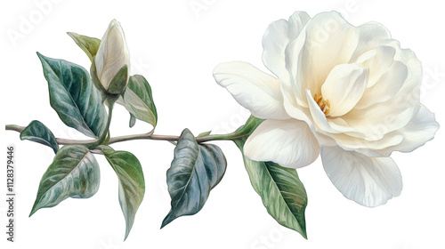 Vibrant Glitch Art White Magnolia Bloom and Bud