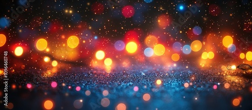 Vibrant glowing lights and bokeh effect on dark background for festive and decorative themes