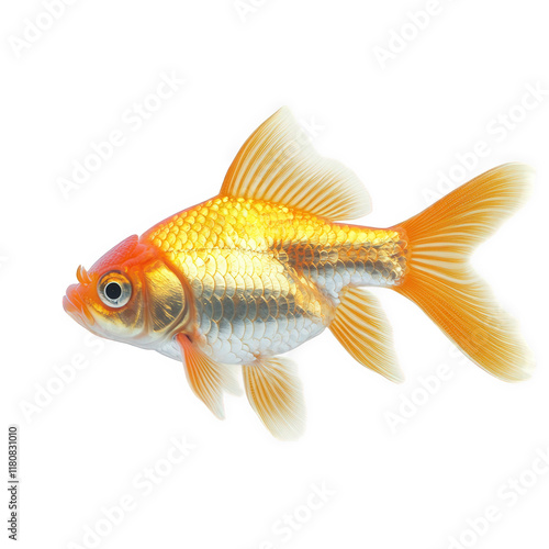vibrant goldfish swimming gracefully against a clean. white background. showcasing its shimmering scales and flowing fins the fish's bright orange and silver coloration highlights its beauty. making i