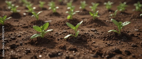 Vibrant green coffee seedlings emerge from rich soil , robusta, vibrant