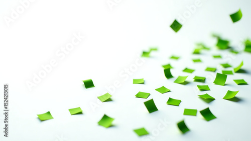 vibrant green confetti scattered bright white background captured angle shallow depth field revealing delicate