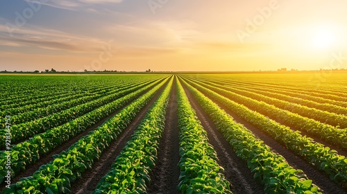 green, crop, field, row, plant, sunrise, agriculture, farming, landscape, nature, growth, vibrant, rural, environment, sustainability, farm, dirtied, sunlight, harvest, crop, natural, outdoors, ecology, agricultural, field, greenery